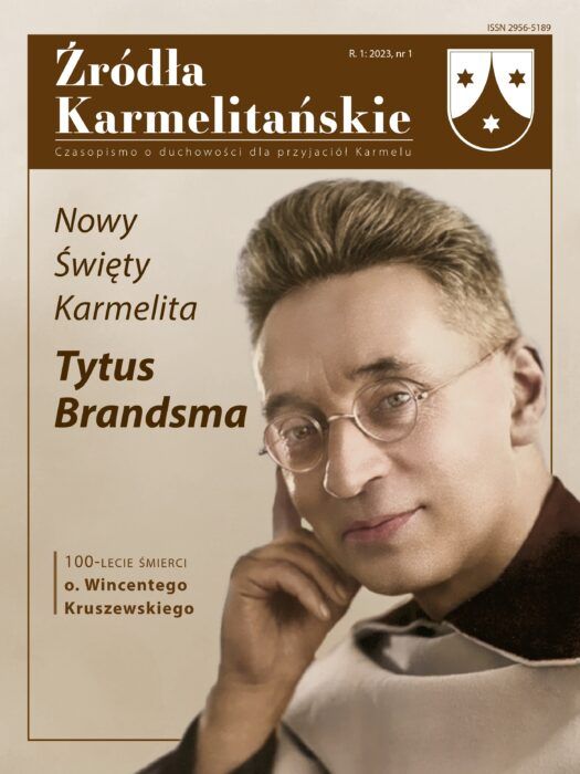 Opatrzność podarowała nam, przy okazji wydania pierwszego numeru „Źródeł”, dwie postacie karmelitów dawnej obserwy: Św. Tytusa Brandsmę z Niderlandów i o. Wincentego Kruszewskiego. Chcemy podziękować Bogu za wielki dar, jakim jest dla Kościoła i dla naszego zakonu kanonizacja Tytusa Brandsmy. To właśnie nowego świętego Karmelu, jako wydawcę i dziennikarza, obraliśmy na patrona „Źródeł”. Dziękujemy Bogu także za o. Wincentego Kruszewskiego, za jego życie i wszelkie dobro, jakiego ludzie doświadczają za wstawiennictwem tego zmarłego w opinii świętości karmelity.